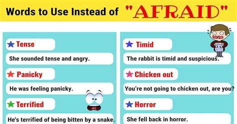 Afraid Another Word. Web find 1,307 synonyms for afraid and other similar words that you can use instead based on 9 separate contexts from our thesaurus. Web synonyms of fear fear 1 of 2 noun definition of fear 1 as in anxiety the emotion experienced in the presence or threat of.