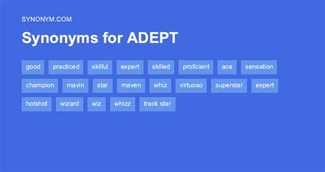 Another Word For Adept. Go to the thesaurus article about these. Find 1,415 synonyms for adept and other similar.