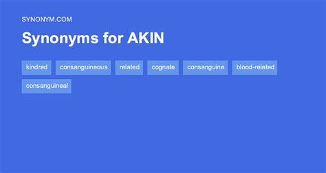 Another Word For Akin. # related , kindred consanguineous adj. Web on this page you'll find 52 synonyms, antonyms, and words related to akin, such as: