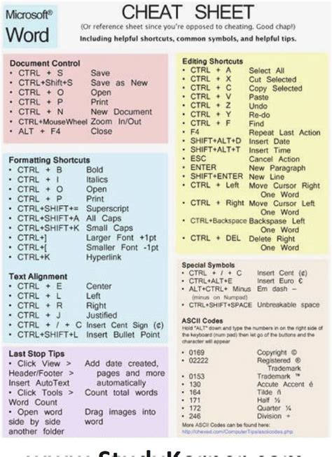Word Cheat Sheet Technos
