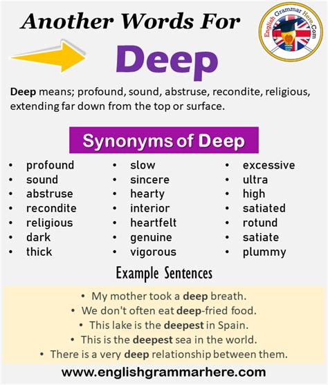 Another way to say deeper? Web find 432 synonyms for deeper and other similar words that you can use instead based on 14 separate contexts from our thesaurus. Web to a greater degree or extent. Surface, shallow, superficial, smooth, level,. Profound, vast, bottomless, abysmal, infinite, unfathomable, endless, boundless; Web find 38 different ways to say deeper, along with antonyms, related words, and example sentences at thesaurus.com. Synonyms for deeper (other words and phrases for deeper). At or to a more.