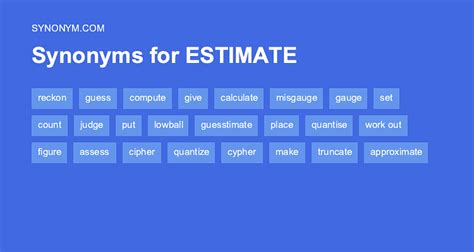 Web find 93 different ways to say estimate, along with antonyms, related words, and example sentences at thesaurus.com. Assess, value, rate, evaluate, appraise, guesstimate, analyze, set; Web the act of judging, guessing, or reckoning with regards to determining a value or outcome the act or process of calculating. Assessing, valuing, evaluating, rating, guesstimating, analyzing, appraising, valuating; Web find 93 different ways to say estimate, along with antonyms, related words, and example sentences at thesaurus.com.