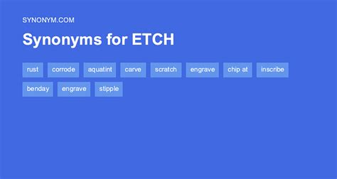 Web find 666 synonyms for etch and other similar words that you can use instead based on 6 separate contexts from our thesaurus. Web find 28 different ways to say etch, along with antonyms, related words, and example sentences at thesaurus.com. Engrave, inscribe, carve, sculpt, grave, trace, incise, sculpture;