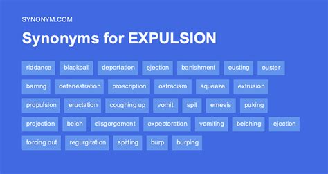 Banishment, discharge, displacement, ejection, eviction, and. Web find 32 different ways to say expulsion, along with antonyms, related words, and example sentences at thesaurus.com. Deportation, displacement, migration, banishment, emigration, exile, dispersion, evacuation; Web on this page you'll find 54 synonyms, antonyms, and words related to expulsion, such as: