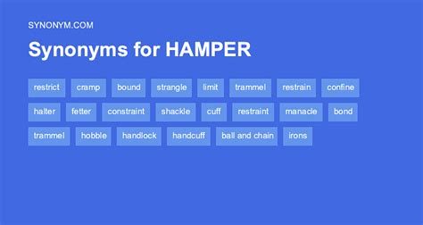 Another Word For Hamper. Web find 3,608 synonyms for hamper and other similar words that you can use instead based on 8 separate contexts from our thesaurus. Hinder, impede, obstruct, embarrass, handicap, inhibit, delay, restrain;