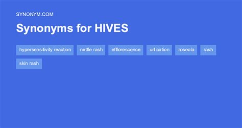 Another Word For Hives. Web find 107 synonyms and antonyms of hives, the plural of hive, a noun or verb meaning a group of bees or a swarm of bees. Synonyms for hives (other words and phrases for hives).