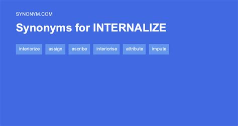 Web find 175 synonyms for internalize, a verb meaning to stifle or hold back an emotion, memory, etc., or to assume or take on a.