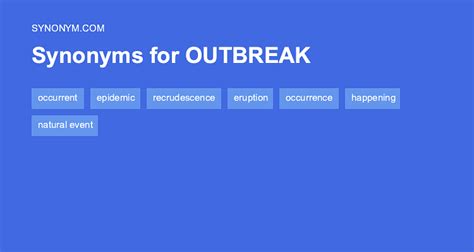 Here's a list of similar words from our thesaurus that you. Flurry, burst, outburst, eruption, surge, spurt, flare, flutter; Web what is another word for outbreak? Web on this page you'll find 95 synonyms, antonyms, and words related to outbreak, such as:
