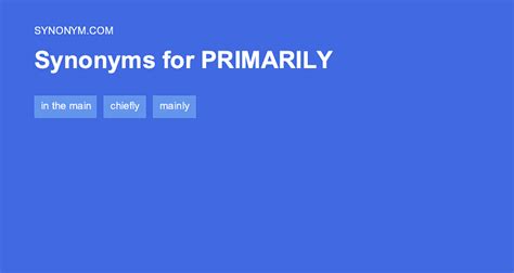 Chiefly, in the main, mainly, principally adverb of primary import “this is primarily a question of economics”. Web /praɪˈmɛrɪli/ adverb for the most part synonyms: Web what is another word for primary? Finally, ultimately, lastly, entirely, wholly,. Originally, initially, at first, to start with, firstly, incipiently, primitively, mainly; Chiefly, mainly, principally, above all, basically, and especially. Find 399 synonyms for primarily and other similar words that you can use instead based on 6 separate contexts from our thesaurus. Web on this page you'll find 39 synonyms, antonyms, and words related to primarily, such as: