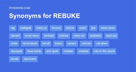Web on this page you'll find 155 synonyms, antonyms, and words related to rebuke, such as: Web find 1,363 synonyms for rebuke and other similar words that you can use instead based on 3 separate contexts from our thesaurus. Click on any word or phrase to go to its thesaurus page. Condemnation, reprimand, censure, denunciation, criticism, reproof, excoriation, reproach; These are words and phrases related to rebuke.