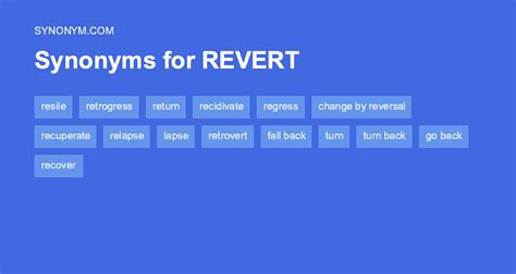 Take up where left off. Words related to revert are. Web here's a list of similar words from our thesaurus that you can use instead. Return, regress, decline, retrogress, lapse, relapse, fall, backslide; While revert means to return to something earlier or to go back, it's often used. Take up where left off. To return or change back to a former.