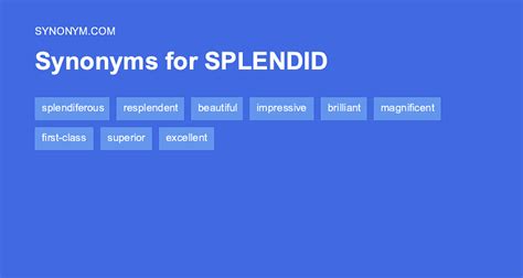 Another Word For Splendid. Web find 2,111 synonyms for splendid and other similar words that you can use instead based on 8 separate contexts from our. Web on this page you'll find 215 synonyms, antonyms, and words related to splendid, such as:
