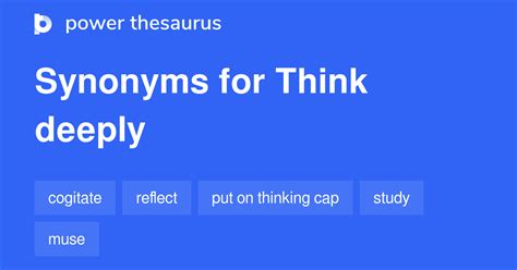 Synonyms for think deeply (other words and phrases for think deeply). Web thesaurus that you can use instead. Present participle for to be in a meditative or. Another way to say think deeply? Web on this page you'll find 39 synonyms, antonyms, and words related to think deeply, such as: Web synonyms for deep thinking (other words and phrases for deep thinking).