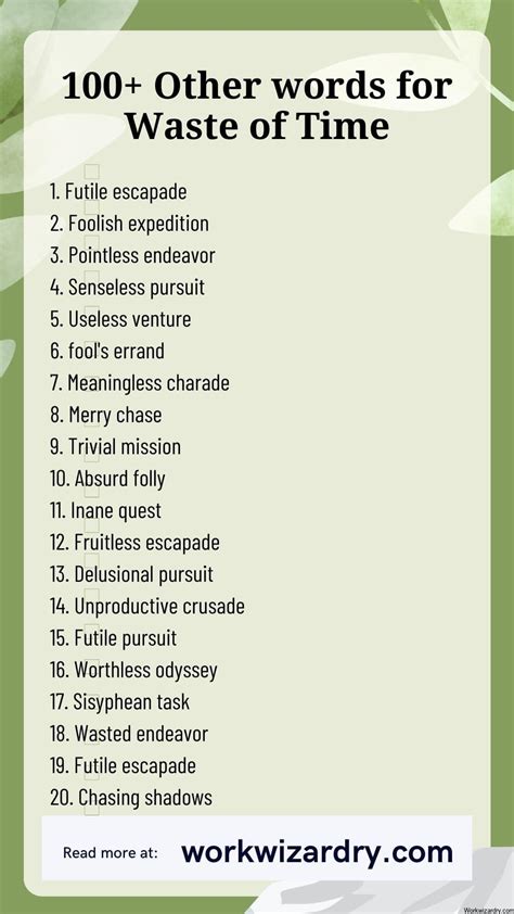 Web what is another word for waste of time? That you can use instead. Web on this page you'll find 10 synonyms, antonyms, and words related to waste of time, such as: Contexts aimless or unproductive activity someone or.