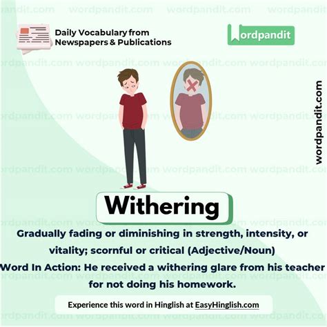 Web find 8 different ways to say withering, along with antonyms, related words, and example sentences at thesaurus.com. Web synonyms and antonyms of witheringin english. Web find 4,640 synonyms for withering and other similar words that you can use instead based on 27 separate contexts from our thesaurus. These are words and phrases related to withering. Failing, deterioration, weakening, wilting, fading, worsening, sinking, degeneration;.