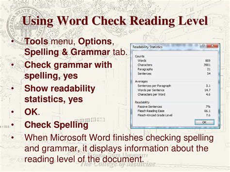 Check Reading Level Word. Web to access readability statistics in word, you'll first need to turn the feature on. In word, click the file tab and then click options.
