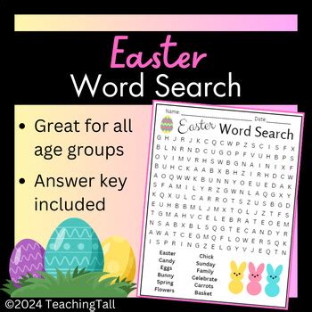 Easter Word Search Answer Key. One page contains religious easter words and the. April basket bonnet break bunny candy celebrate cheep chick children chocolate church.