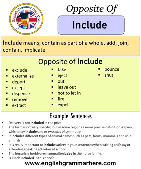 Web find the opposite word of include in different contexts and verbs. Web antonyms for include (opposite of include). Involve, contain, encompass, entail, carry, comprise, number, take in; See synonyms, antonyms, related words, phrases and.