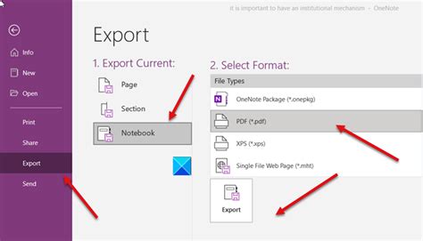 OneNote how to export your notes