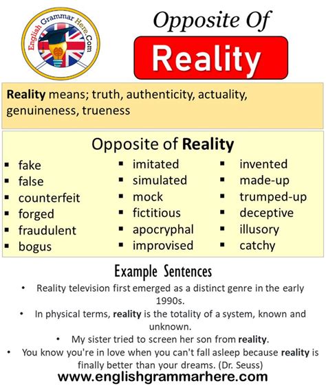 Web find 48 different ways to say reality, along with antonyms, related words, and example sentences at thesaurus.com. Web (unreality) opposite of the way in which things exist in real life (concept) opposite of the way in which things exist in real life. Case, fact, phenomenon, actuality, materiality, certainty, occurrence,.
