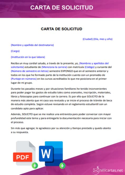 Solicitud Formato Word. Si andas buscando ejemplos, modelos y formatos de solicitudes para descargar en formato word o pdf.