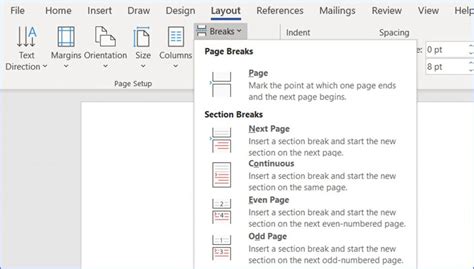 Click breaks under page setup to open a. Web to change formatting in a document, insert a section break at the beginning of where you want the change. Web click the layout tab on the ribbon at the top of the word window.