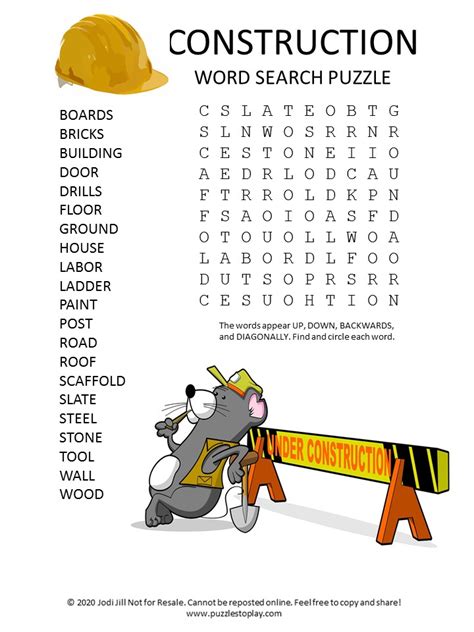 Construction Word Search WordMint