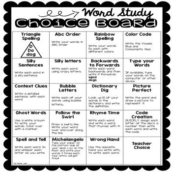 Word Study Choice Board. Web word study choice board. Web you asked for it, here it is!